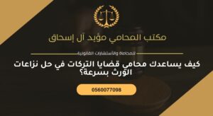 كما يساعد محامي قضايا التركات في تسريع عملية التفاوض بين الورثة، والوصول إلى حلول ودية في وقت قياسي. وفي حال اللجوء إلى القضاء، يحرص على تقديم القضية بشكل منظم، مما يسرّع من صدور الحكم.