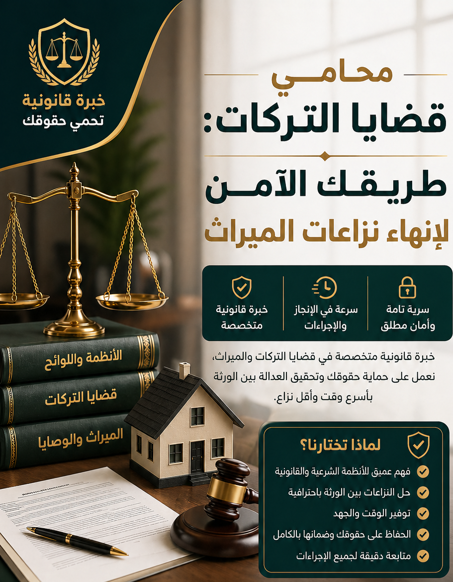في هذه الحالات، فإن الاستعانة بـ محامي تركات + نزاعات الورثة بشكل سريع يساعد في احتواء المشكلة قبل أن تتفاقم، ويضمن حماية الحقوق.